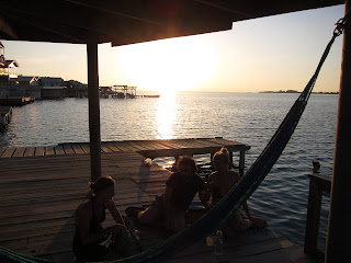 But there was more on Utila. Once a year the island organizes a dance festival...SunJam. On an uninhabited key (=small atol) close from the main island, 1500 people gather to enjoy the music of international dj's, sun (including -set and -rise), sea, drinks and local food. And that was obviously something that Ela and Robin needed to check out...and with success. It is a fact that we will never again have a party on such a beautiful location again